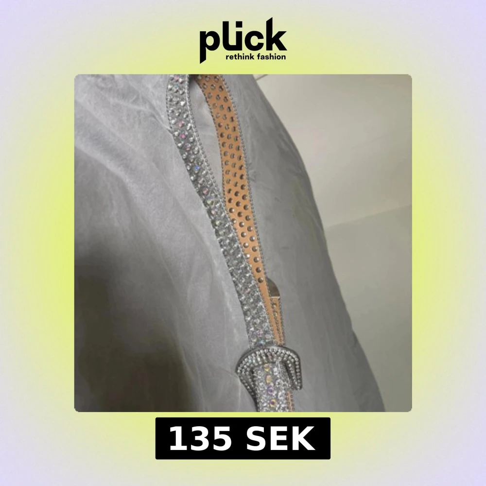 Säljer ett snyggt bälte i silver med massor av glittrande strass och nitar. Bältet har en klassisk form och spänne som också är täckt av stenar. Insidan är beige och bältet är gjort i ett material som liknar skinn. Perfekt för att lyfta vilken outfit som helst!