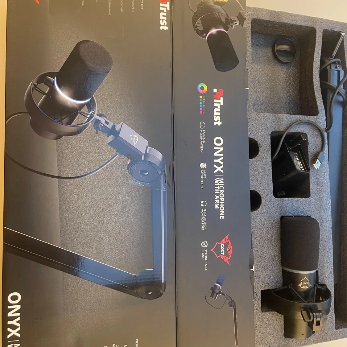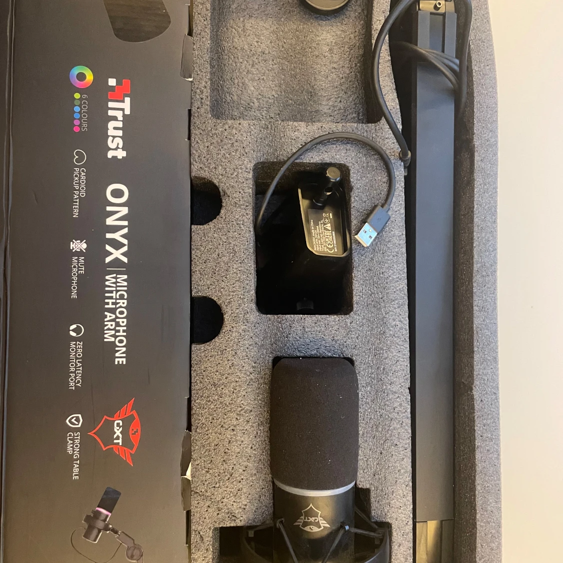Perfekt mikrofon med kartong och alla delar och i nyskick. Inköpt för 2255 Trust GXT 255+ Onyx Microphone & Arm är ett högkvalitativt USB-mikrofonpaket designat för streaming, podcasting och inspelning. Mikrofonen erbjuder klar och professionell ljudkvalitet med en kardioid pickup-mönster, vilket gör den idealisk för att fånga ljud från framför mikrofonen. Paketet inkluderar även ett justerbart mikrofonarmstativ för enkel montering och positionering. Säljes som ny för 850kr
