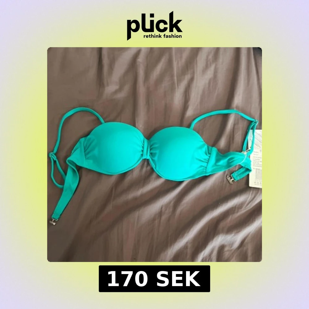 Turkos bikiniöverdel från spanien. Axelbanden är justerbara och knäpps i ryggen med spänne. Snygg och enkel modell som ger bra stöd och passar perfekt till stranden eller poolen. De har även lite push-upp som man ser på andra bilden, aldrig använda, har kvar etiketter. perfekt till semestern