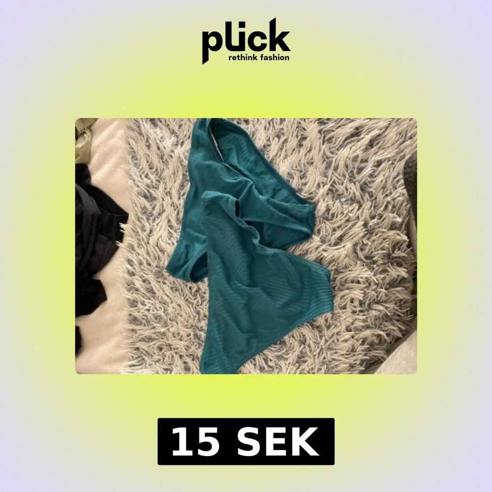 Snygg turkos bikiniunderdel med ribbad struktur. Modellen har en klassisk form med medelhög midja och är tillverkad i ett stretchigt syntetmaterial som sitter skönt. Perfekt för strandhäng och pooldagar i sommar. Jag har för mig att de är ifrån H&M men är inte säker, 1 för 10 eller båda för 15kr. De är ej användna då de var för små för mig. Fler bilder kan skickas