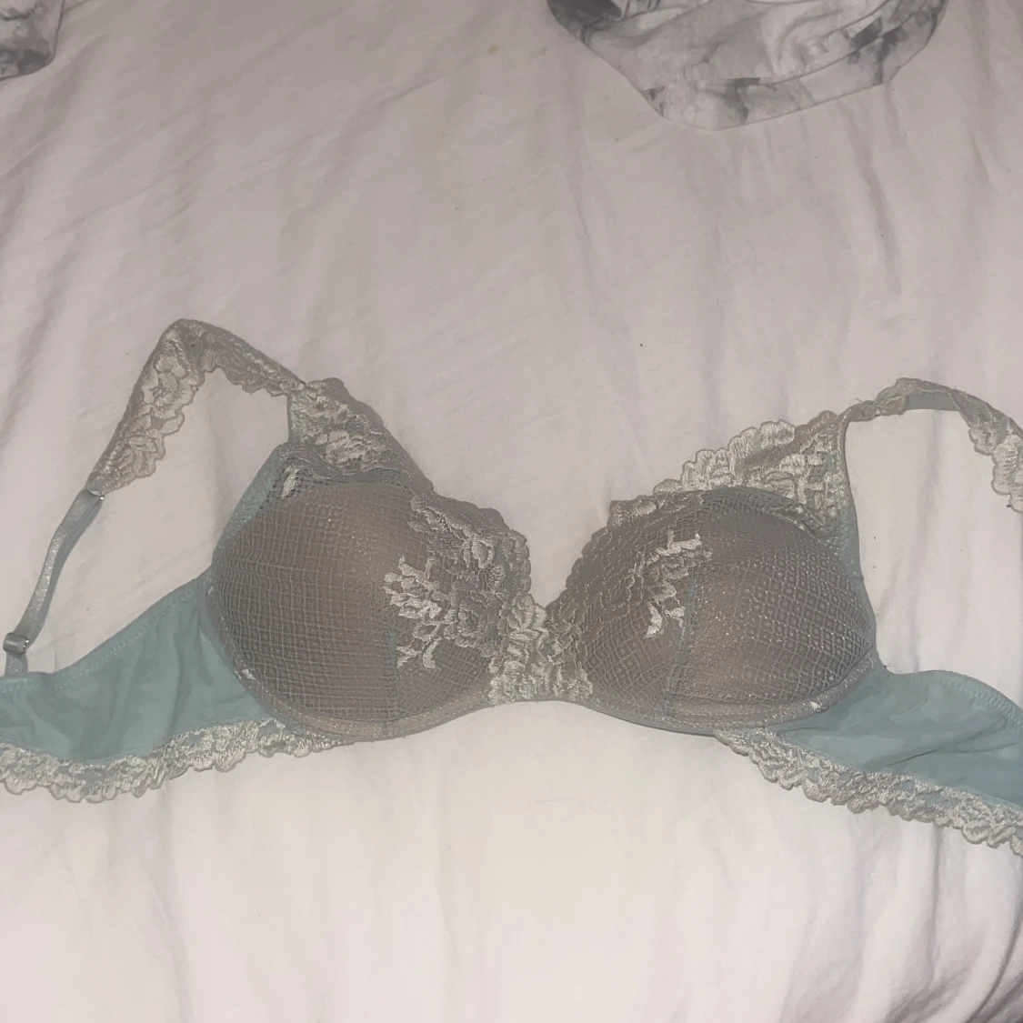 Säljer en elegant bh i turkos med vacker spetsdetalj. Bh:n har justerbara axelband och en fin blommig spetsdesign som ger en romantisk känsla. Storlek 75b säljer då den inte kommer till användning❤️