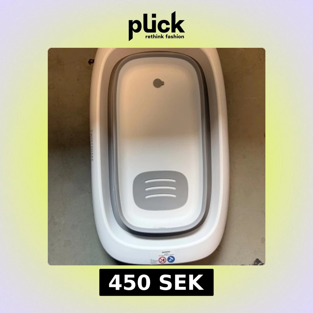 Bilderna visar en hopfällbar badbalja från Twistshake i vitt och grått. Baljan är rymlig, har halkskydd i botten och ett praktiskt avlopp. Skicket ser bra ut med endast mindre ytliga märken. Perfekt för barnbad eller som portabel balja. Enkel att fälla ihop och förvara.
