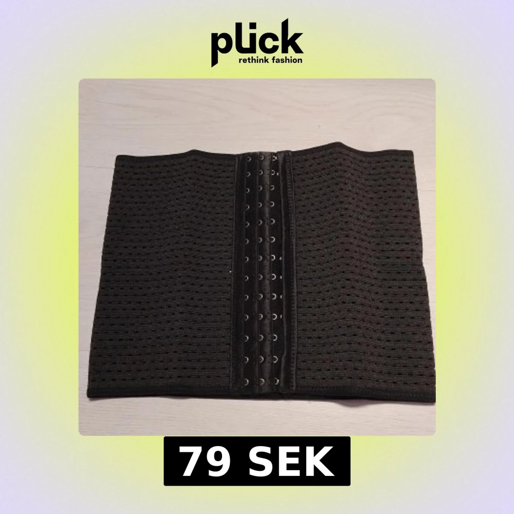 Säljer en svart waisttrainer korsett med hyskor framtill. Den har ett perforerat mönster för bättre andningsförmåga och är tillverkad i Kina. Perfekt för att forma midjan och ge stöd. Storlek Large 74-78 cm höjd 24.5 cm