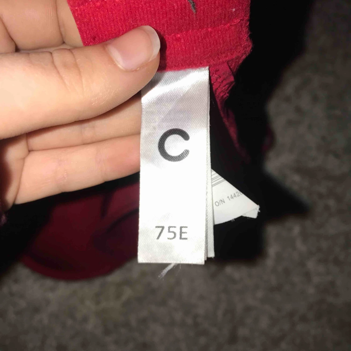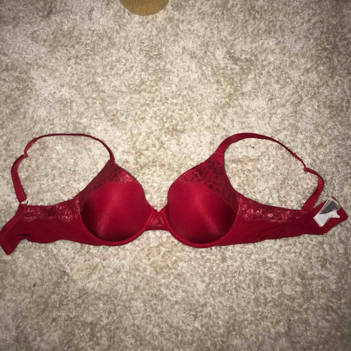 Oanvänd röd bh med glitterdetaljer fån Cubus i 75E