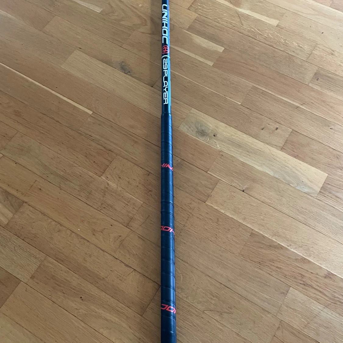 Unihoc Player 29 Flex innebandyklubba i svart med röda detaljer. Flex 29 för bra kontroll och skott. Klubbans skick är mycket gott, med minimalt slitage synligt på skaftet och bladet. Perfekt för både träning och matchspel. Pris kan diskuteras .