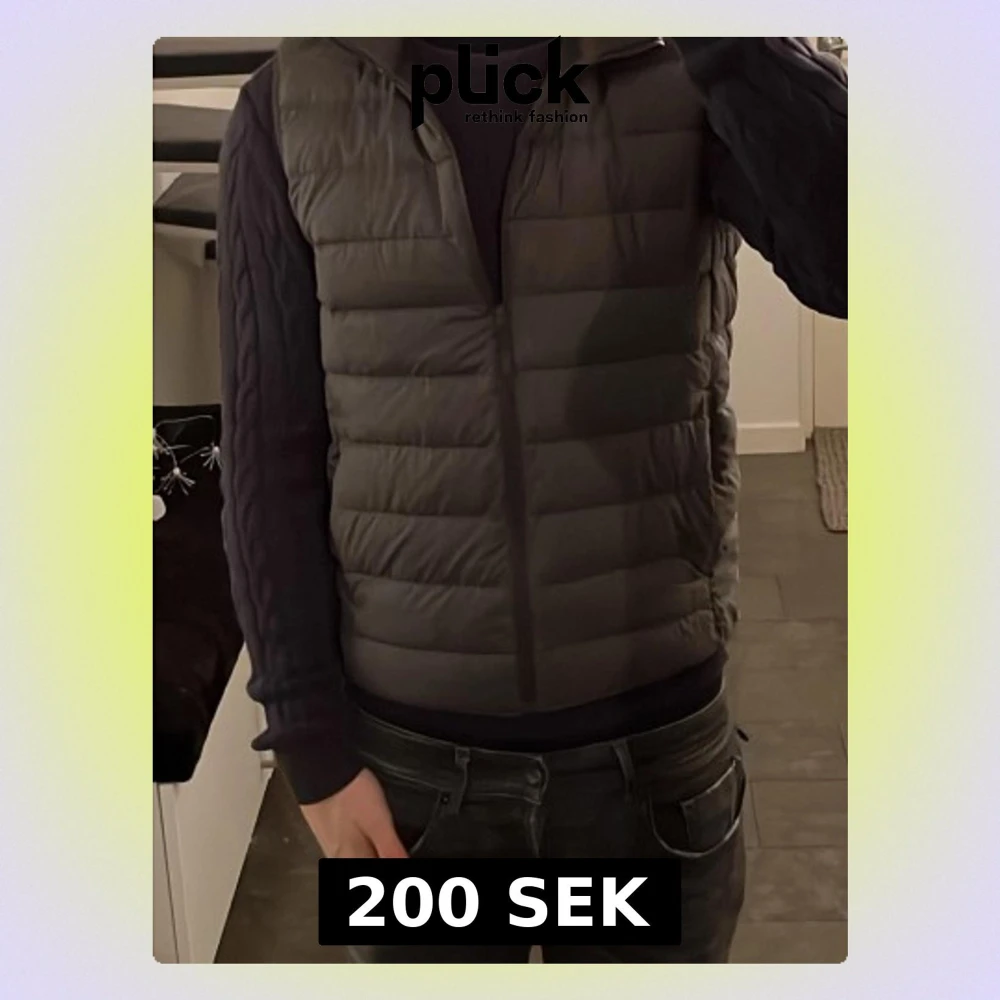 Säljer en grå dunväst från Uniqlo Ultra Light Down. Västen har en quiltad design med horisontella sömmar, hög krage och dragkedja framtill. Perfekt att slänga över en hoodie eller tröja för extra värme. Lätt och smidig att bära, passar till många olika stilar.
