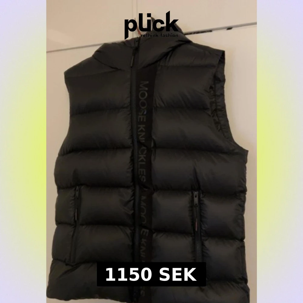 Moose knuckles väst med luva i storlek S, den är väldigt stor i storleken så skulle nog säga att den passar mer M eller L. Nyskick.