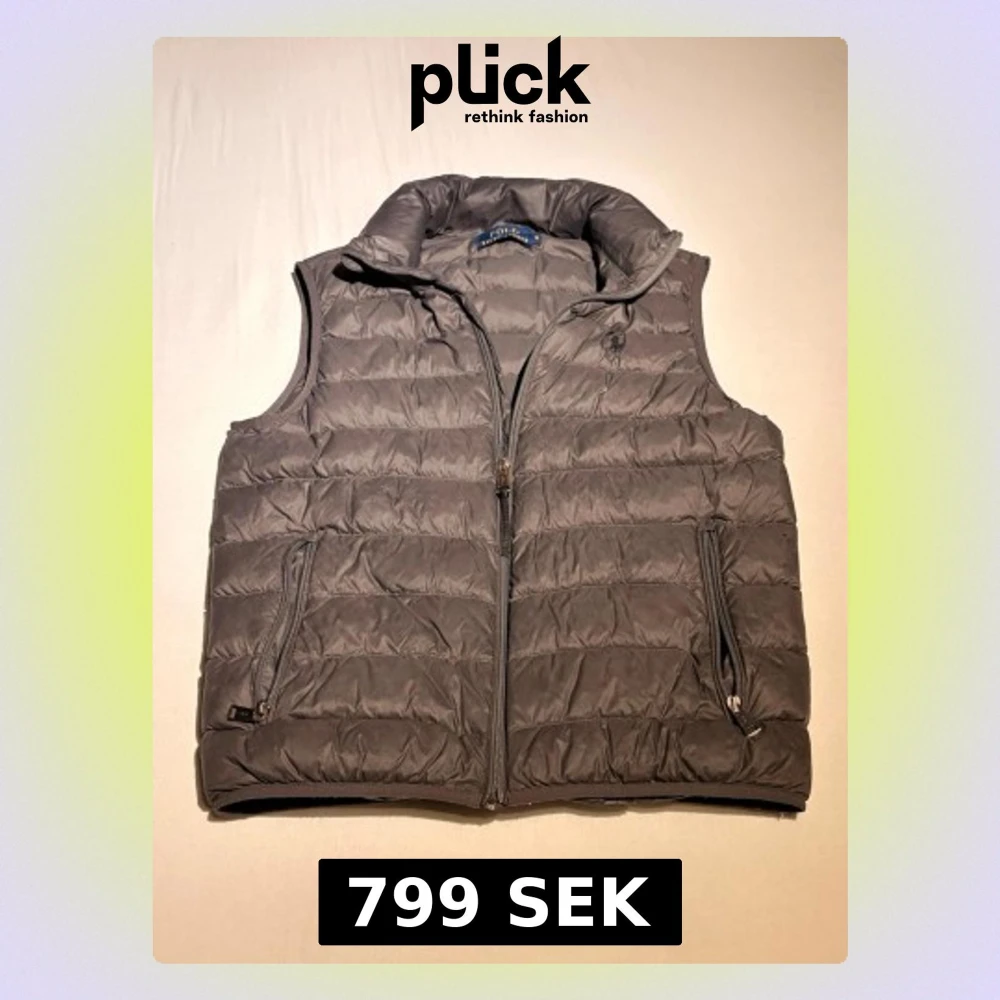 Säljer en grå dunväst från Polo Ralph Lauren i storlek S. Västen har hög krage, två sidofickor med dragkedja och quiltad design. Perfekt att slänga över en hoodie eller tröja för extra värme. Klassisk och stilren look. Hundra procent äkta 💯