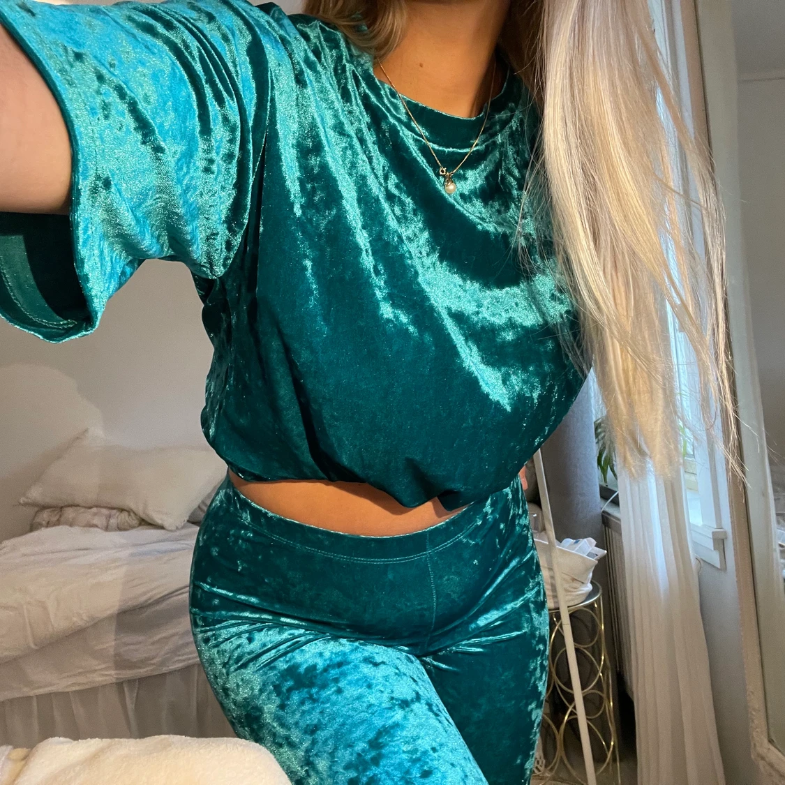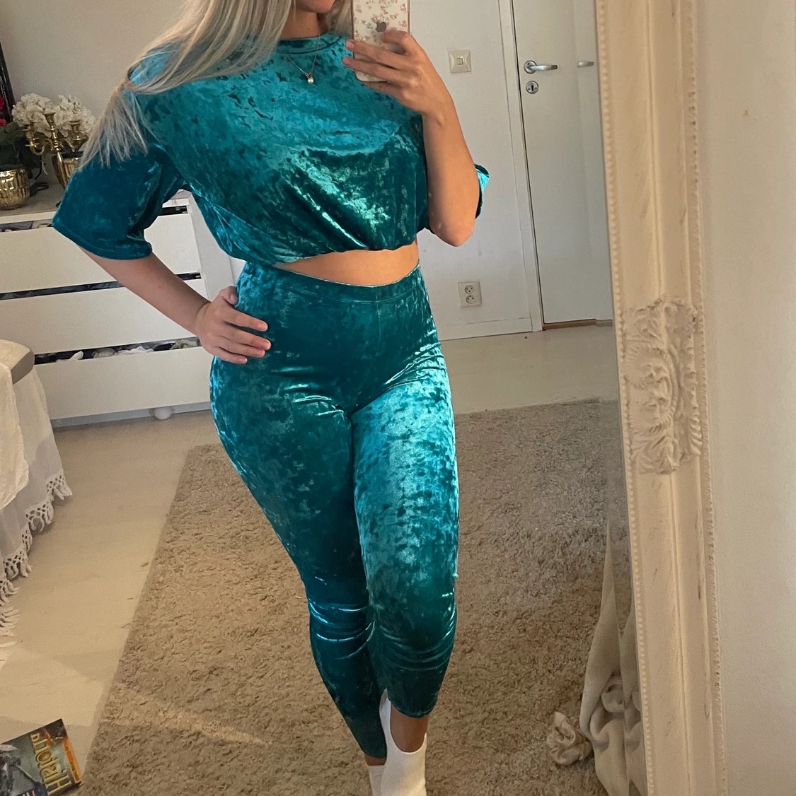 Tröjklänning samt tights från monki i velour. Tröja i XS och byxor i S