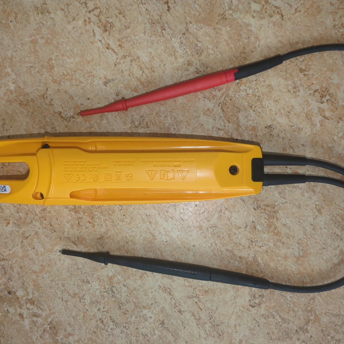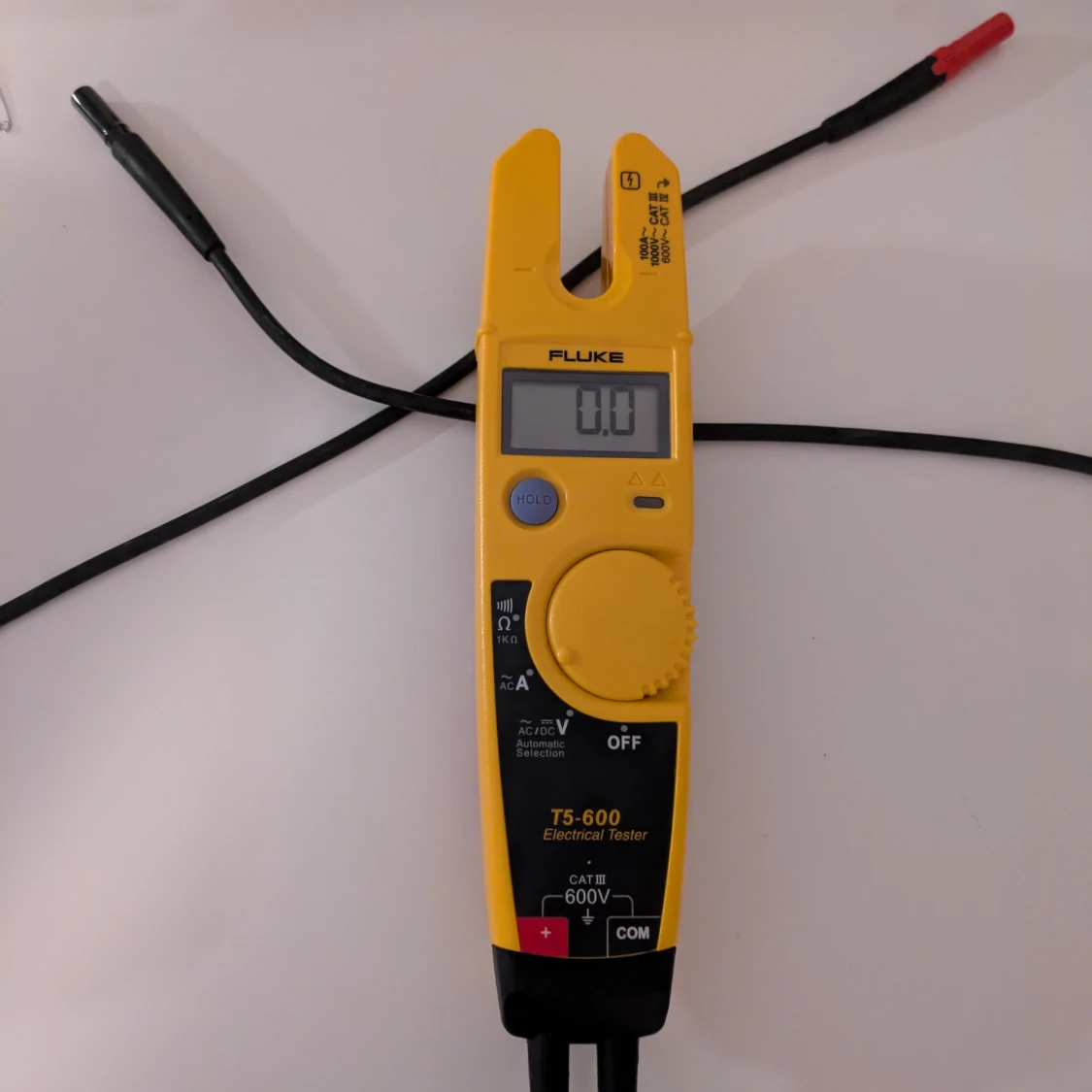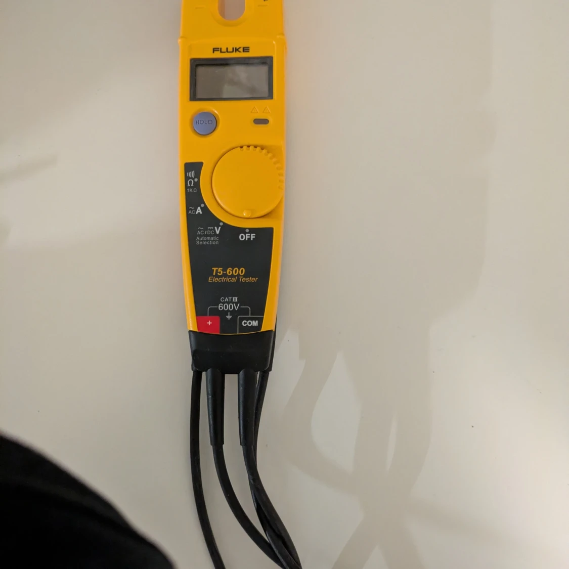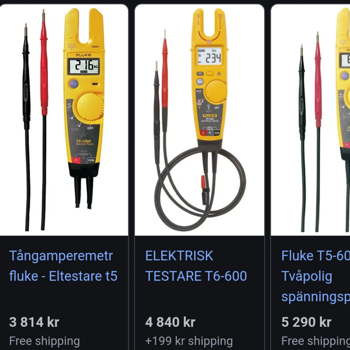Säljer en Fluke TS-600 elektrisk testare i gult med digital display och vridbar ratt för inställningar. Den har två testkablar, en röd och en svart, för mätning av spänning och ström. Perfekt för elektriska arbeten och felsökning. Köp direkt eller ge prisförslag 💡Den kostar mellan 3500