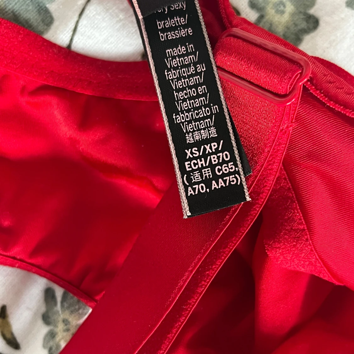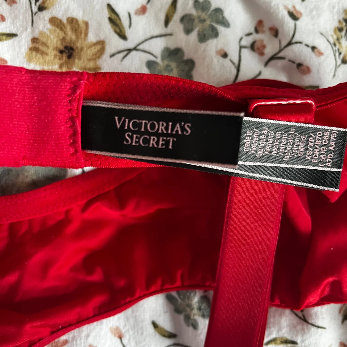 Röd braledde från Victoria’s Secret med de ikoniska bling axelbanden❤️ Endast använd 1 gång. Storlek XS💕 Orginalpris 20 euro (220kr) Priset kan diskuteras!