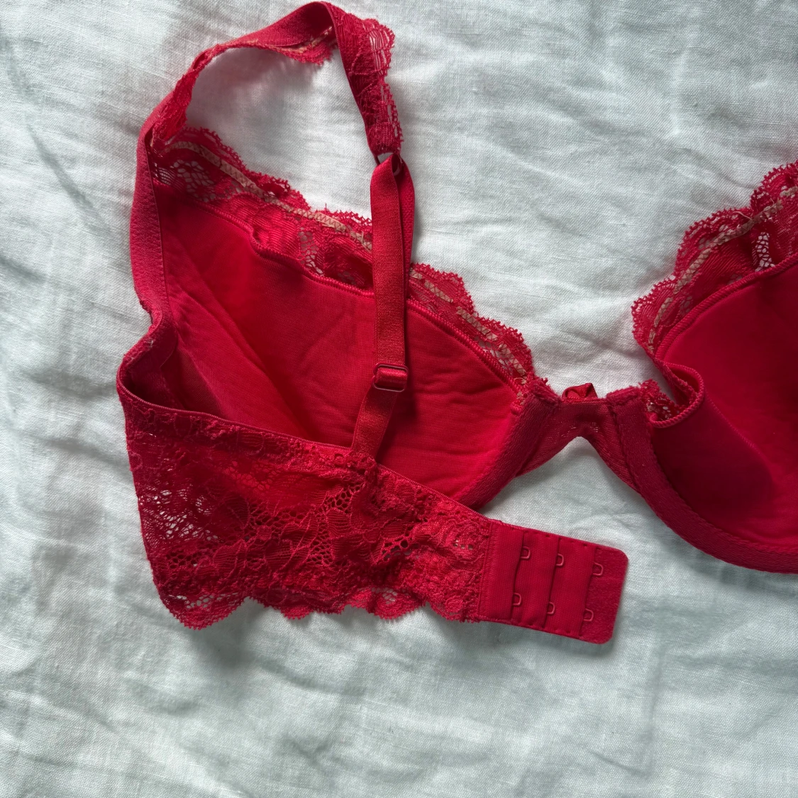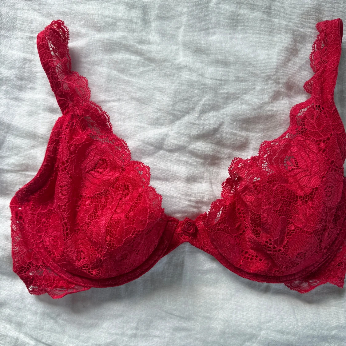 Supersnygg spetsBH från Victoria’s Secret med en fin ros detalj! Ord. Pris ca 750kr, stl. 34 D = 75 D
