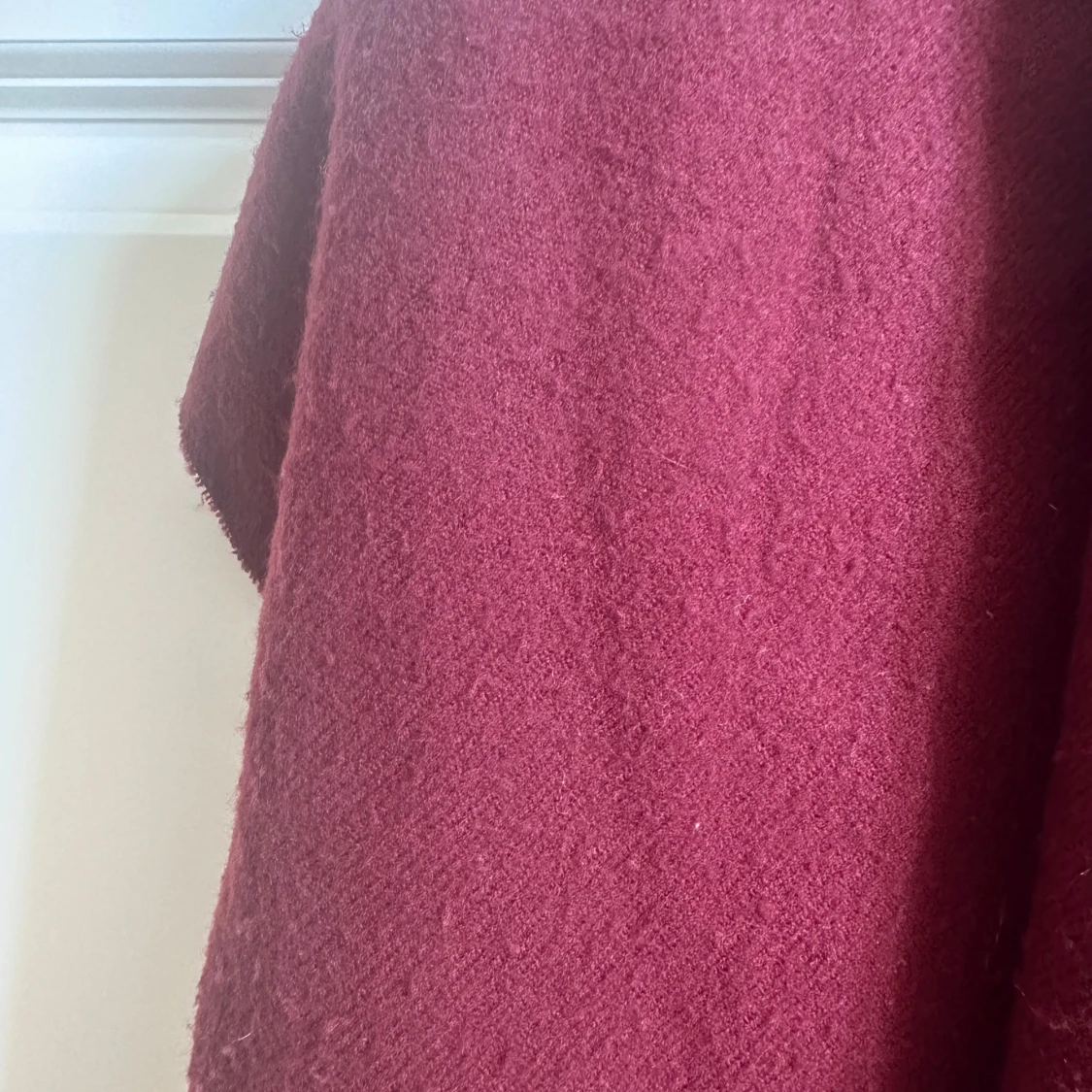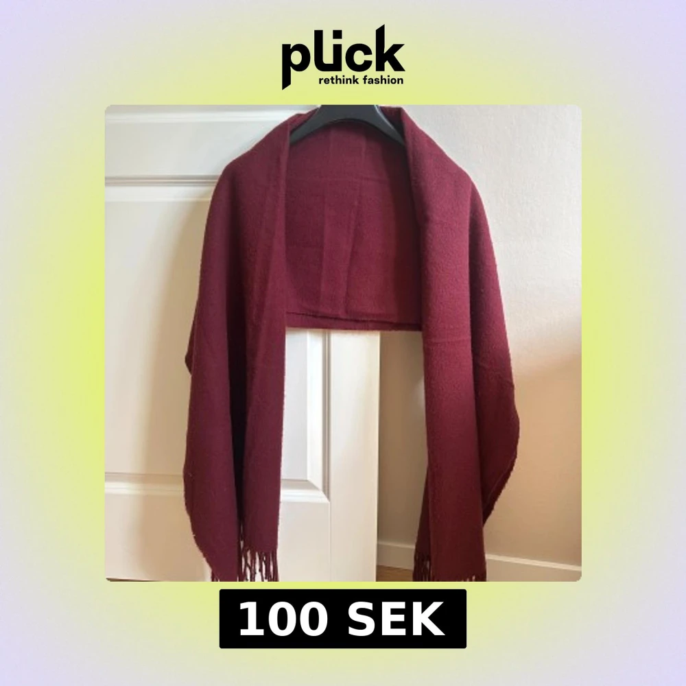 Mysig vinröd halsduk med fransar i ändarna. Tjockt och mjukt material som håller dig varm under kyliga dagar. Har blivit nopprig, men det kan man åtgärda med noppermaskin!