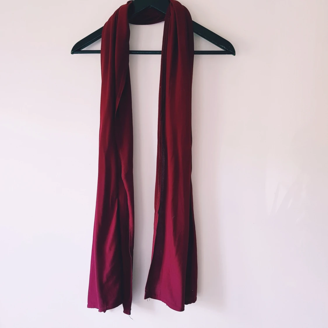 Snygg och tunn vinröd halsduk i silke. Den är lång och smal, perfekt att slänga över axlarna för en stilren look. Färgen är djup och elegant, och materialet känns lyxigt och mjukt mot huden. Lite tjockare tyg Helt skick dock tvättludd & obehandlade fläckar