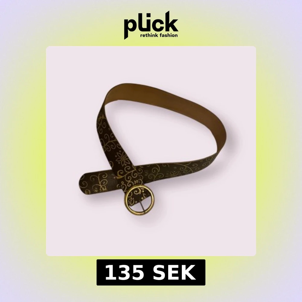 Brunt skärp med guldmönster och rund spänne! Använd men inte för sliten, storlek 115 cm💋