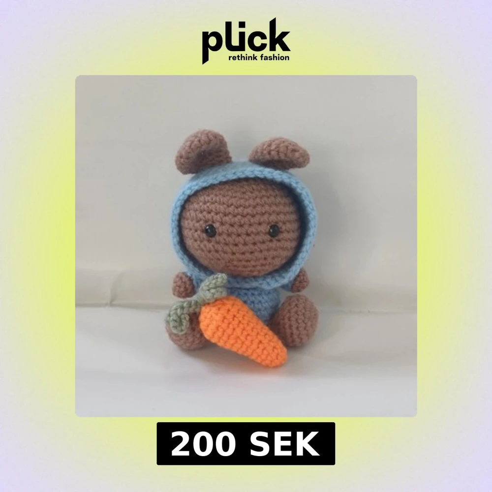 Virkad kanin med hoodie och en morot, handgjord av mig.