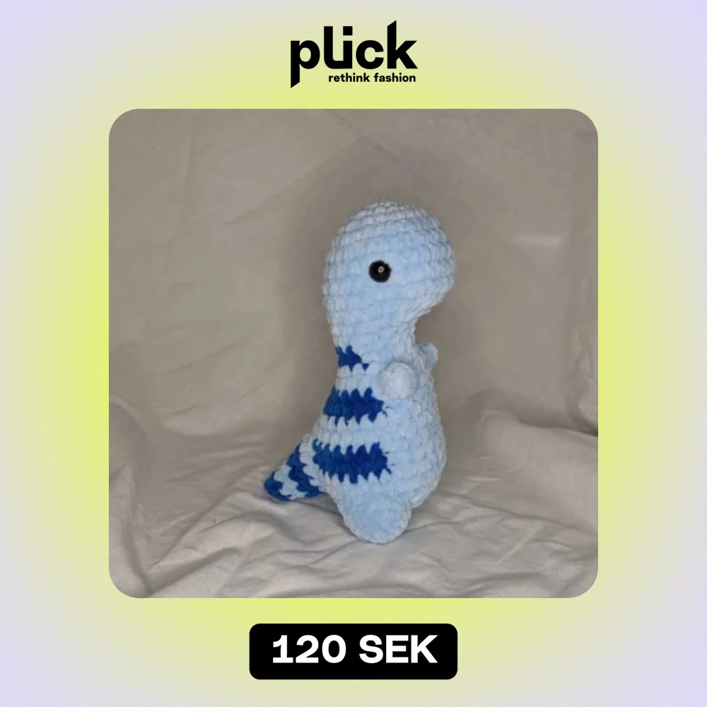 Höjd: 18cm Bred: 11cm Det är en egenvirkad trex som är gjord på fluffigt garn som är 100% polyester