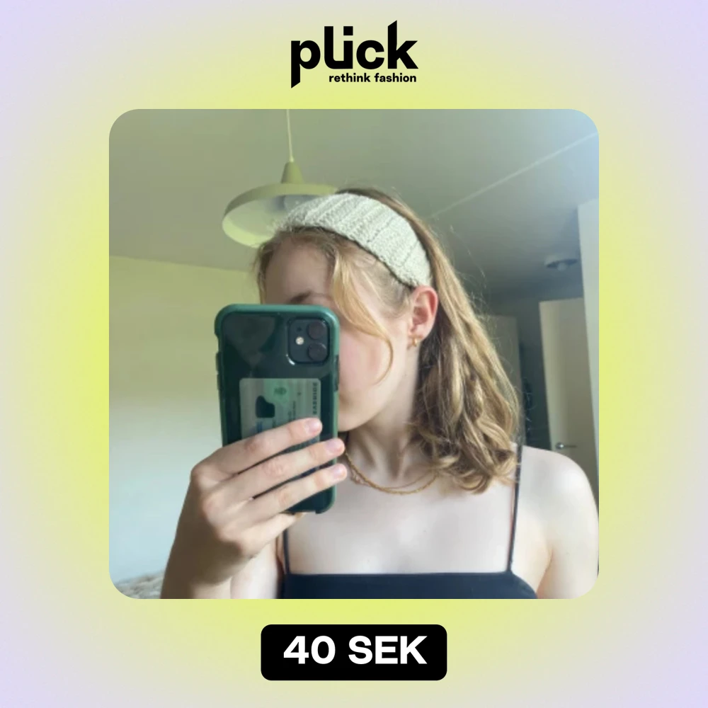 Ett virkat hårband. Lite stretchig. Passar mig som har 54cm om man mäter kring huvudet så som ett hårband brukar sitta.