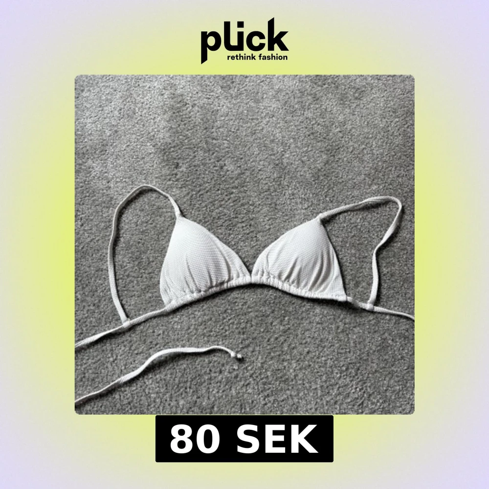 Snygg vit bikiniöverdel med ribbad textur och knytband. Perfekt för sommarens stranddagar. Triangelformad design som ger en klassisk look. Aldrig använd förståss