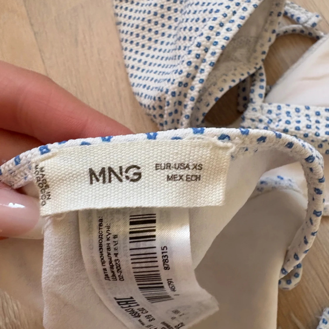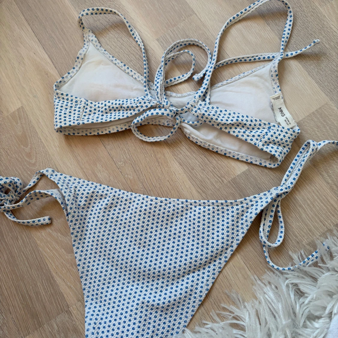 Superfin bikini från mango i storlek XS med vitt tyg och små blå prickar! Knappt använd och i fint skick !!