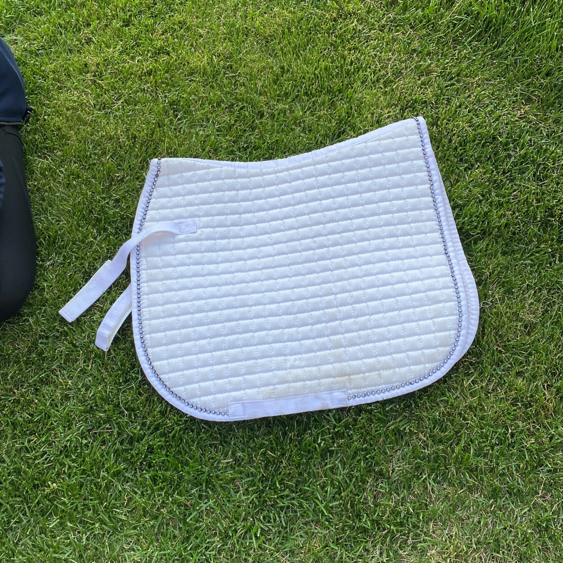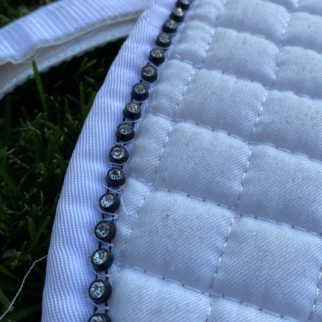 ❗️pris kan diskuteras❗️Säljer mitt super fina vita schabrak!🦢💎 Säljer pg av att storleken är ponny och det passar tyvärr inte mik nya häst🎀 obs! Alla diamanter är kvar!💎🥰Tvättas såklart innan den fraktas!