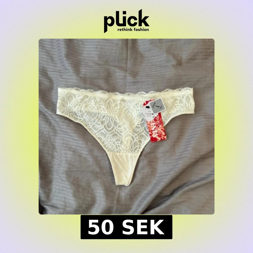 Snygga vita trosor med bred spetskant och blommigt mönster och en fin diamant detalj i mitten . Helt oanvända med prislapp kvar i storlek L/40. Köpta för 129 säljer för 50kr.