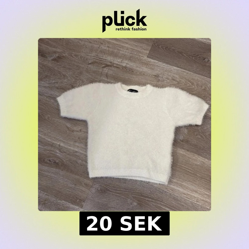 Mysig vit stickad tröja från New Look. Den har korta ärmar och en rund halsringning💕( de är ett hål i men man kan lätt sy några stygn