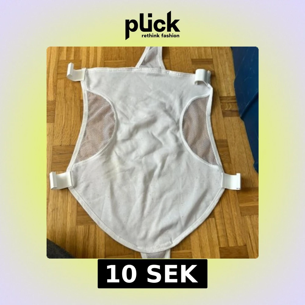 Vit väst i bomull med meshpaneler på sidorna för extra ventilation. Västen har en unik form med fyra vita spännen i plast för enkel fastsättning. Perfekt för dig som vill ha något annorlunda och funktionellt.