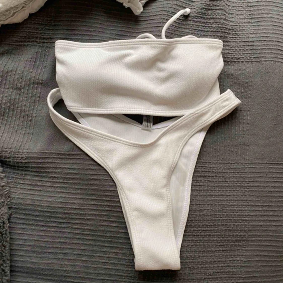Vitt ribbat skitsnyggt bikini set från Zaful. Enbart provad annars oanvänd. Frakt tillkommer💞