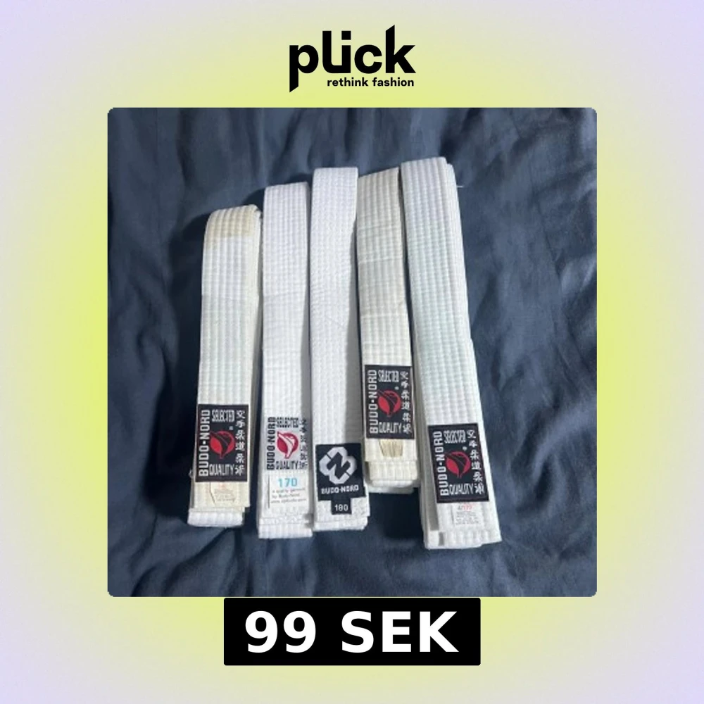 Flera vita karatebälten från Budo-Nord i olika längder (140, 150, 170, 180 cm). Klassisk design med broderad etikett och diskret struktur. Bältena är tillverkade i en mix av bomull och polyester, perfekta för kampsportsträning.