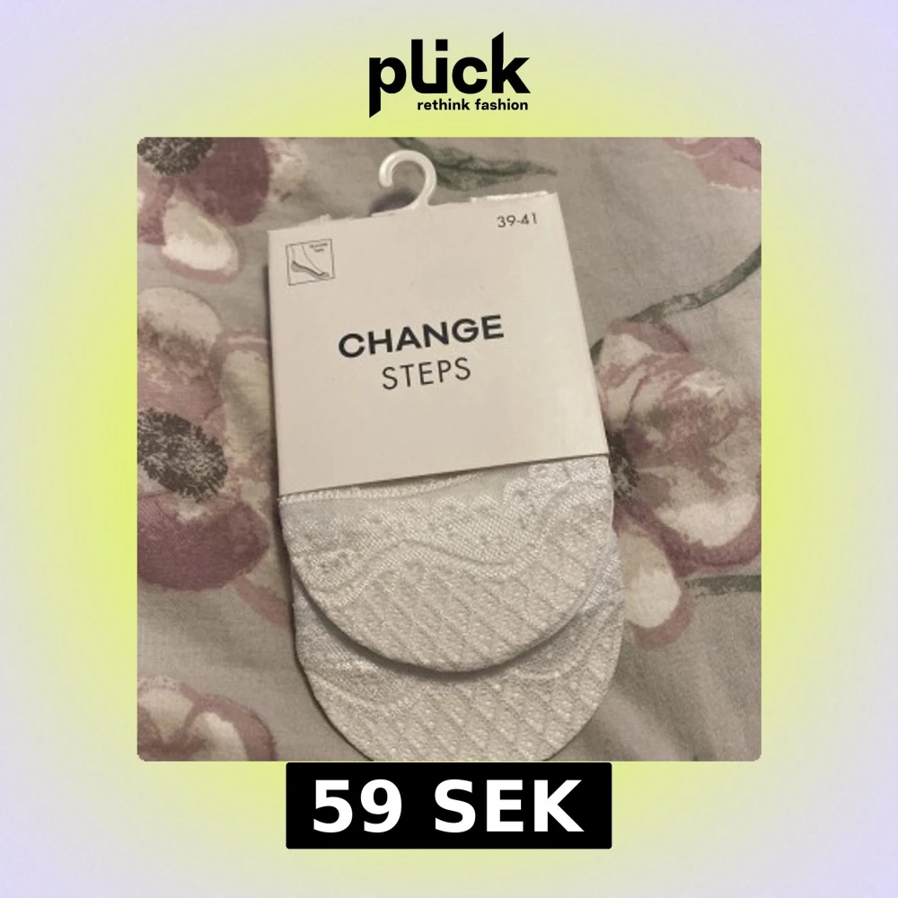 Säljer ett par vita låga strumpor från Change Steps i storlek 39-41. De har ett diskret mönster och är tillverkade av 60% bomull, 35% polyamid och 5% elastan. Perfekta för sneakers eller låga skor när du vill ha en clean look.