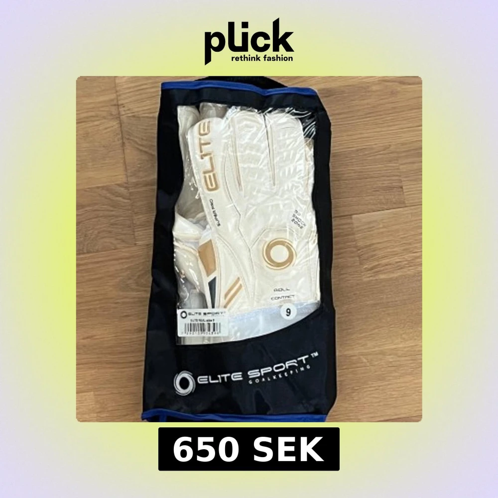 Säljer ett par vita målvaktshandskar från Elite Sport med roll contact design. Handskarna har en stilren look med guld- och svarta detaljer samt justerbara handledsband för optimal passform. Perfekta för att ge ett bra grepp och skydd i målet. Storlek 9.