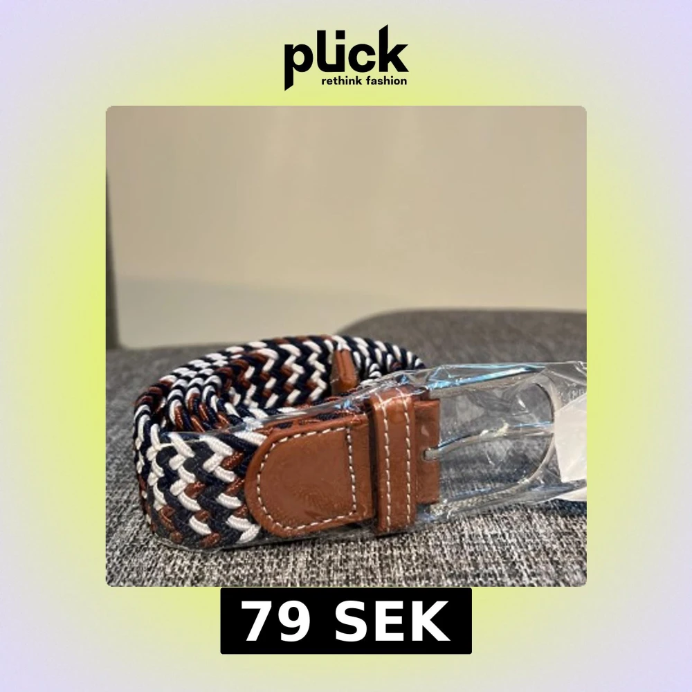 Säljer ett snyggt flätat bälte med bruna skinn-detaljer och metallspänne. Bältet har ett mönster i blått, vitt och brunt och passar perfekt till jeans eller chinos. Stilren design som ger outfiten en extra touch. Passar till de flesta då det är elastiskt!