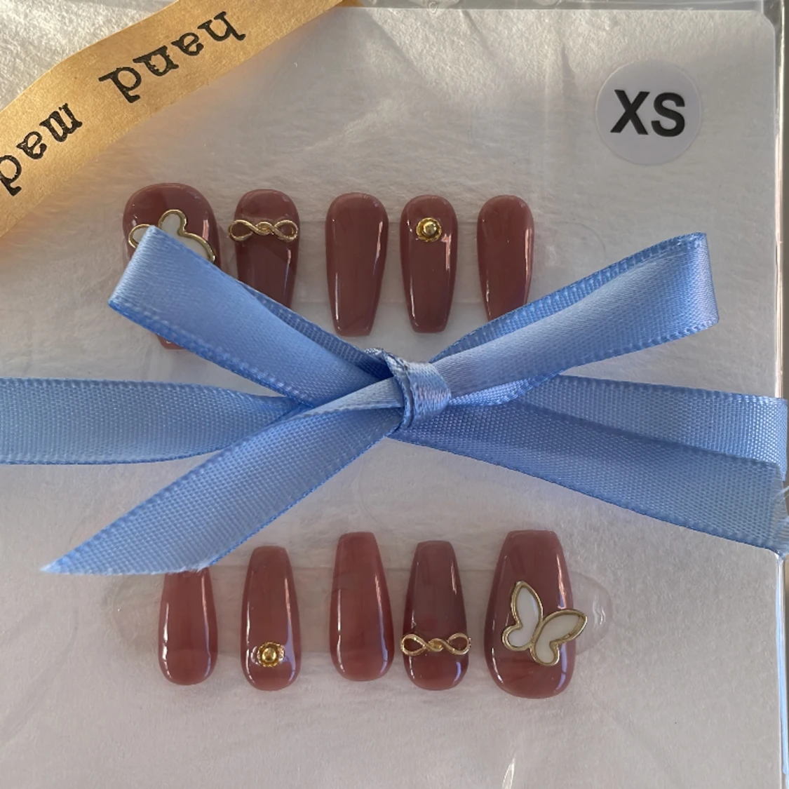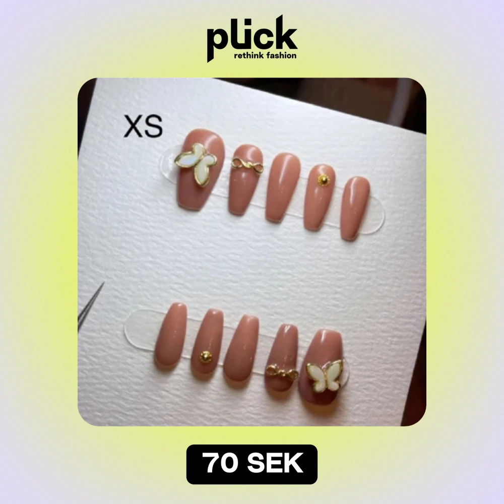 JĂ€ttefina press on naglar köpta frĂ„n Von_Sua (finns pĂ„ plick) i storlek Xs (14mm, 11mm, 11,5mm, 10mm, 8mm) med ingĂ„end nagelkitt (nagellim, fil, vĂ„tservetter). Ej anvĂ€nda dĂ„ de tyvĂ€rr var för smĂ„. Paketet Ă€r öppnat dĂ„ jag insĂ„g att de inte passade.đ
