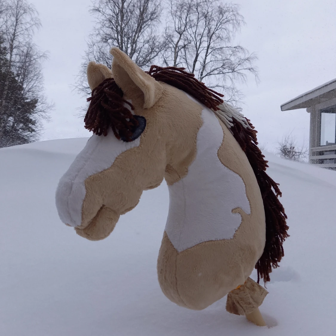 Käpphäst. Säljs med stoppning utan käpp, träns följer med. Sydd av mig för hand. I bra skick, utan hål (förutom näsborrar). Tyvärr så har vliselinet på insidan av tyget låssnat så det prasslar då man tar i käpphästen och därför säljer jag lite billigare.