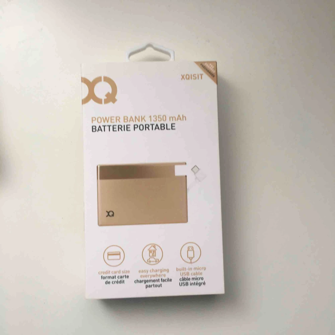 Det här är en PowerBank som funkar bara till samsung input alltså intag. Den har en storlek som en kredit kort. Det komer med en laddare med en samsung intag. Och en power bank. Produkten är helt ny och inte använd!