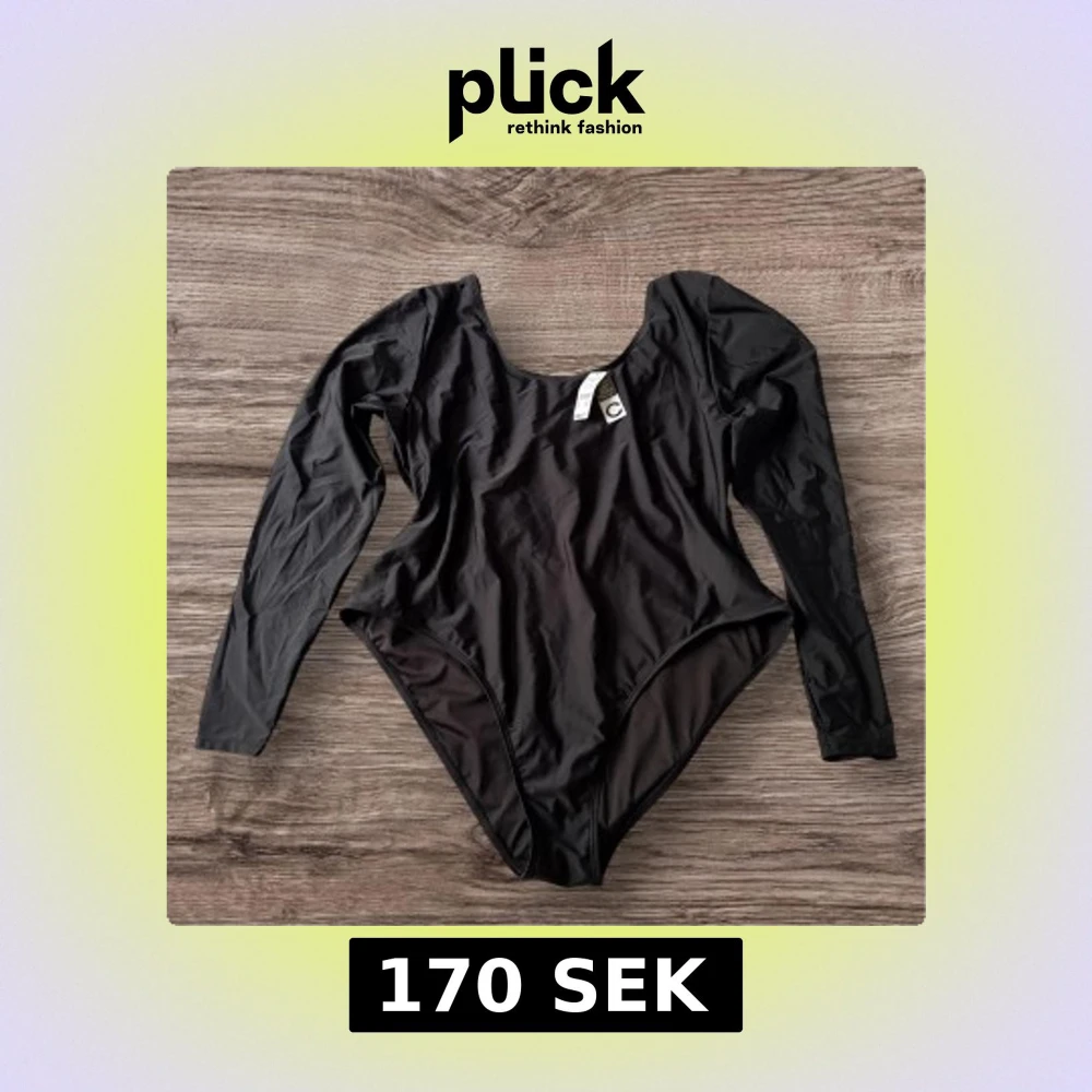 Säljer en svart stilren långärmad baddräkt. Petfekt för både simning och strandmode. Öppen ryggdesign med knytning vilket ger baddräkten feminin och justerbar passform.