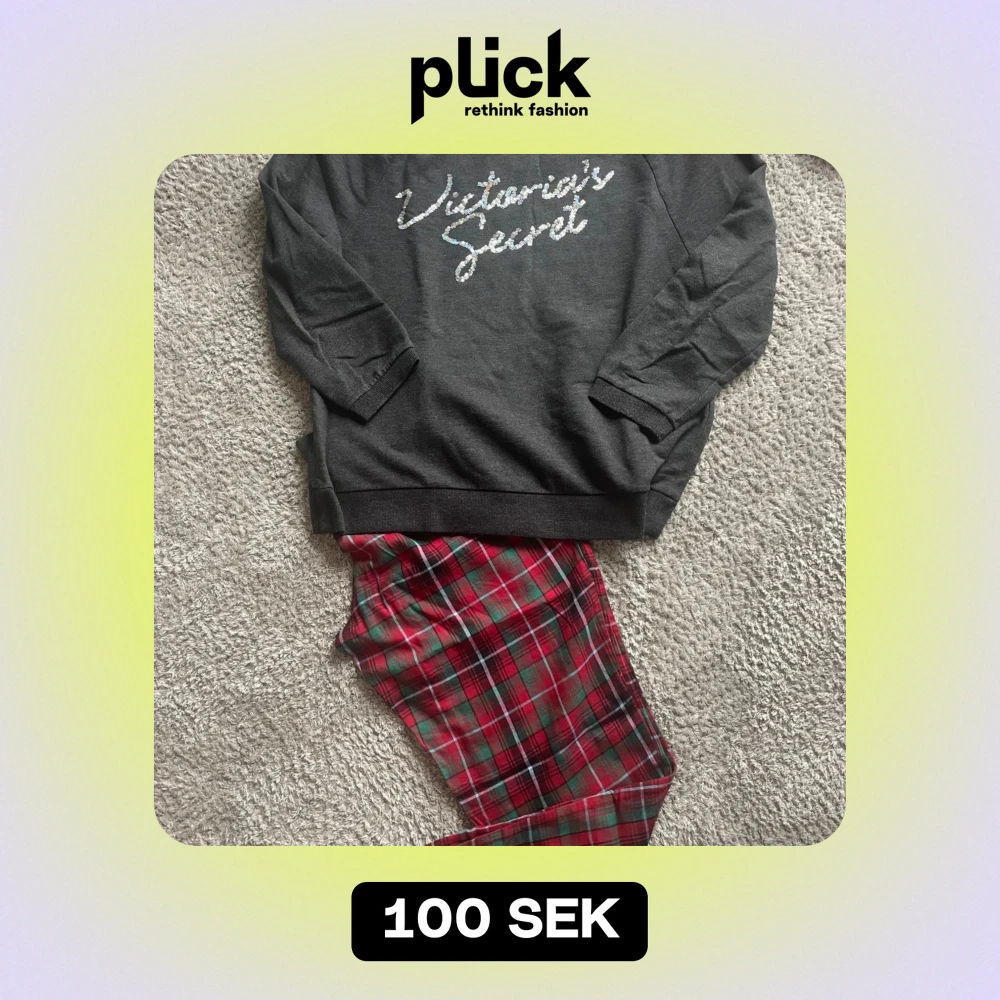 Grå tröja från Victoria's Secret i storlek XS, rutiga röda byxor tillkommer. Perfekt mjukissett inför höst och vinter.