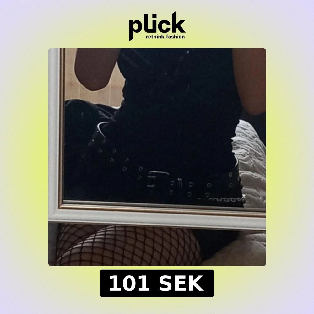 Säljer ett svart bälte med silverfärgade nitar och en snygg kedja på sidan. Man kan ta bort kedjan!! Och den är helt ny har använt bara en gång