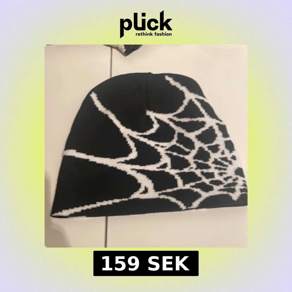 Cool svart mössa med ett stort vitt spindelnätsmönster runt hela mössan. Perfekt accessoar för dig som vill sticka ut och addera lite edge till din outfit. Materialet är stickat och känns mjukt mot huvudet. Passar både till streetwear och mer alternativa stilar.