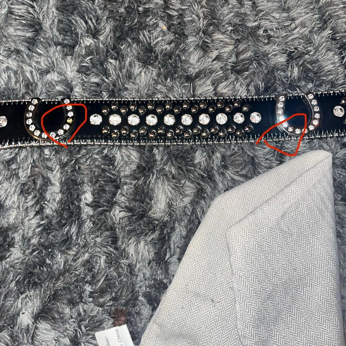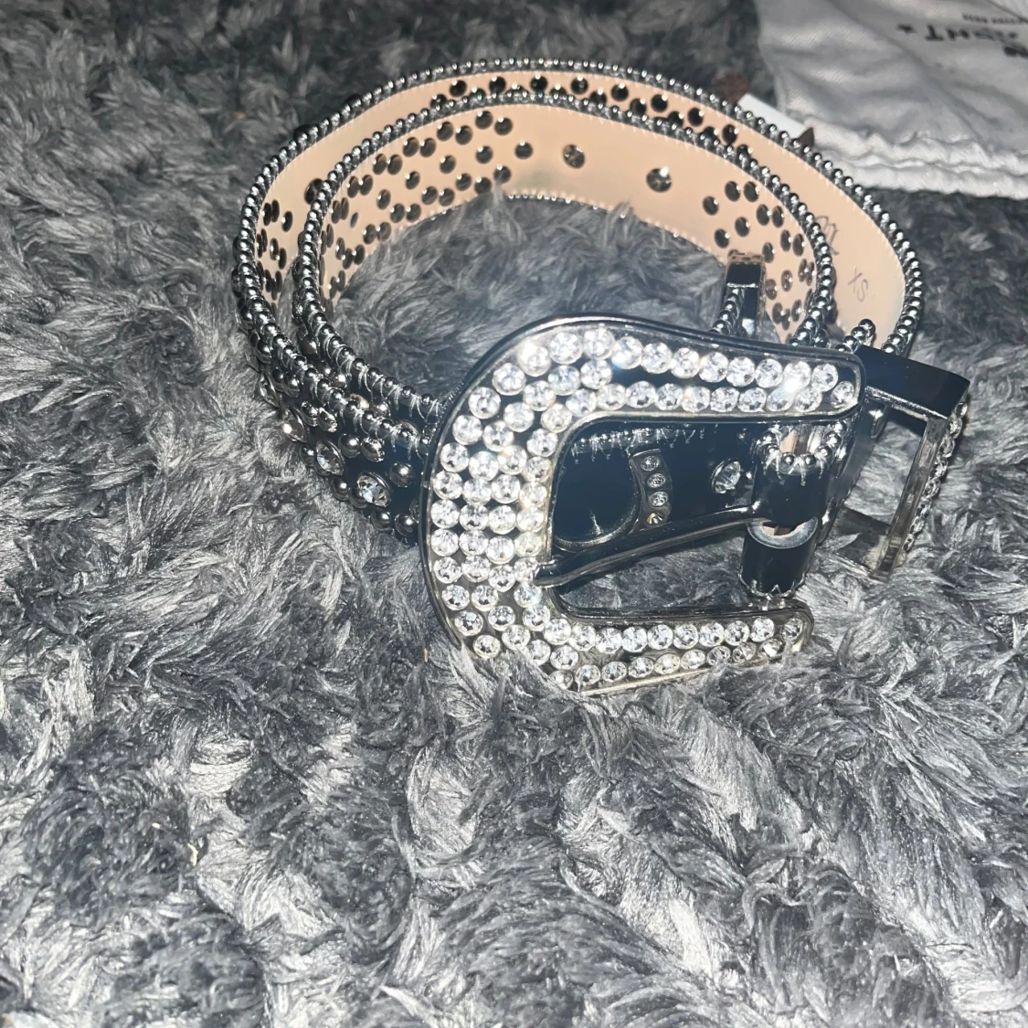 Säljer pga använder inte så mycket längre. Storlek XS skriv ifall ni undrar om mått. Ända deffekterna är att 2 småstenar ur hästskorna har ramlat ut försökte ringa in på den sista bilden men man ser knappt.