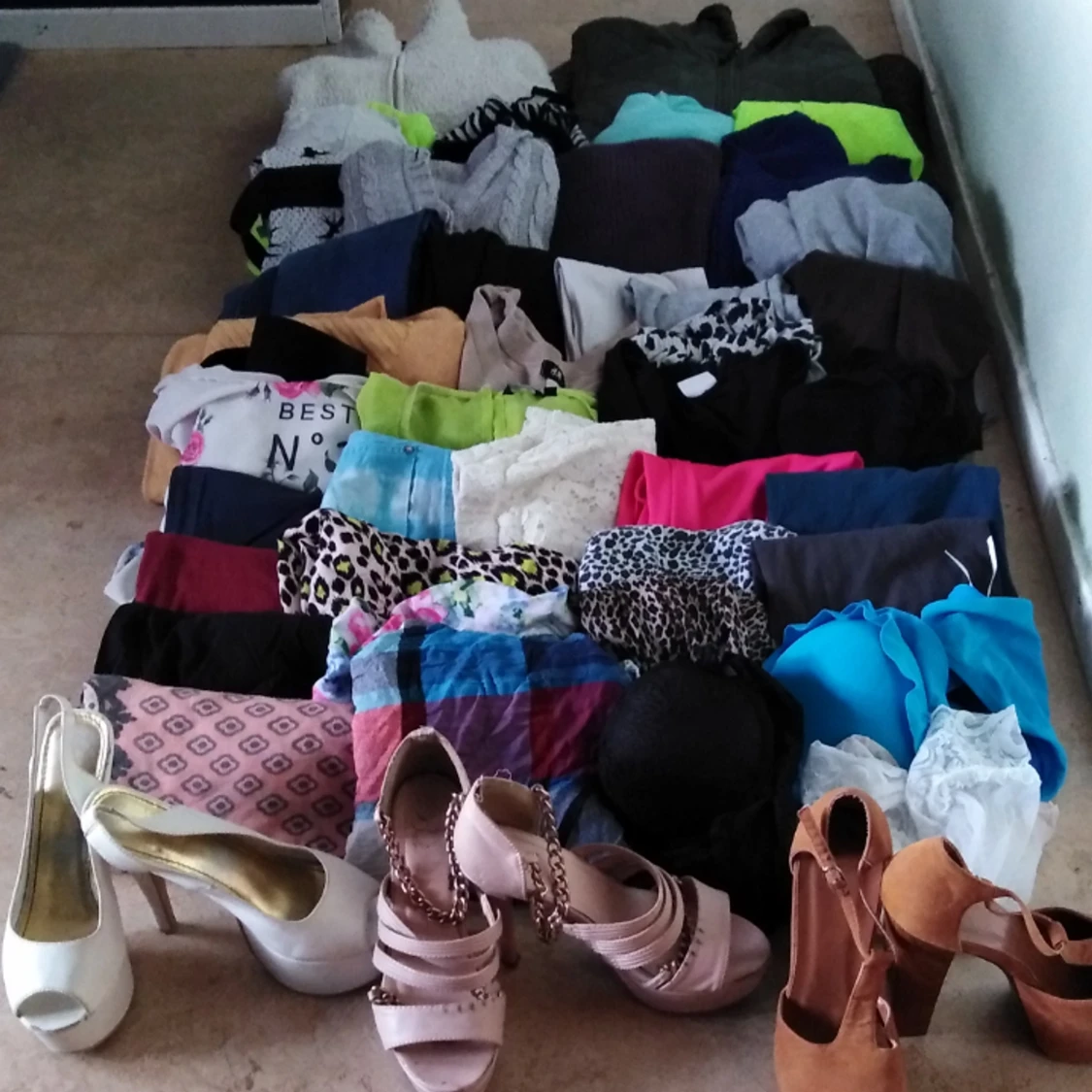 Klädpaket tjej Storlek S/M någon enstaka större Skor storlek 36/37 Allt är i fint skick Totalt 39 plagg och 3 par skor HÄMTAS I HUSBY BACKE SÖDERKÖPING Snabb hämtning önskas PAKETPRIS 250:- 2 jackor 5 klänningar 4 koftor 5 långbyxor 1 poncho 2 långärmade 3 kortärmade toppar 2 kjolar 2 shorts 9 linnen 1 bikini 2 stora scarfs 1 par stay-up använda 1 timme 1 spetsbody oanvänd 3 par skor