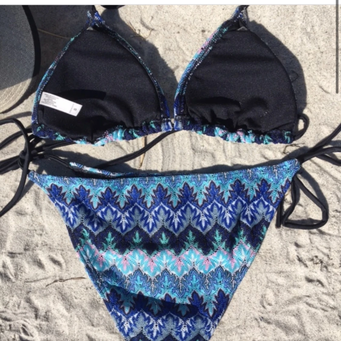 Super snygg och cool bikini inför sommaren 🤩👙. Aldrig använd då jag köpte fel storlek. Men skulle ändå säga att den ser liten ut i storleken. Skriv om det finns frågor eller funderingar. Påsen som den kom i medföljer även❣️🤗
