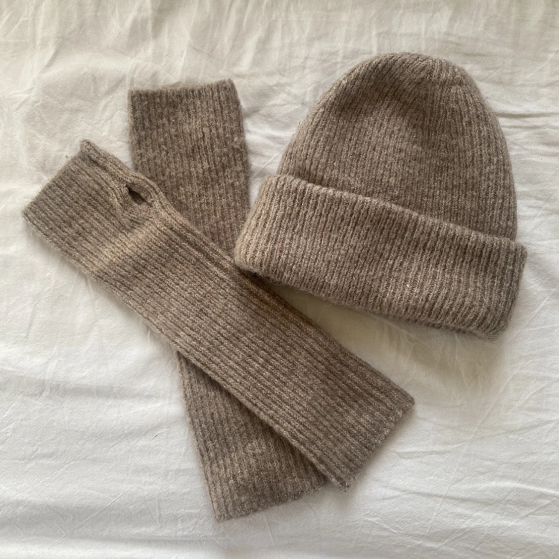 Beige mössa och handledsvärmare från zara 🤎 99kr för allt tsm