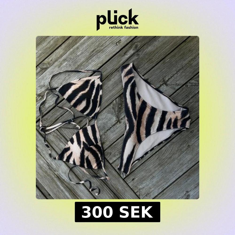 Snygg zebramönstrad bikini från H&M med knytband. Underdel i 38 och över del 40! Säljs ihop