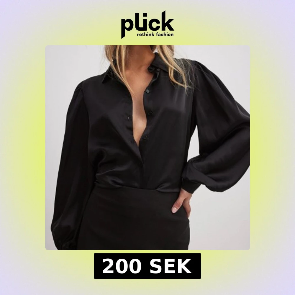 svart skjorta i satin. Skjortan har långa ärmar med lite volang längst ner. Aldrig använd och säljer därav den🌸nypris : 499kr, storlek 34