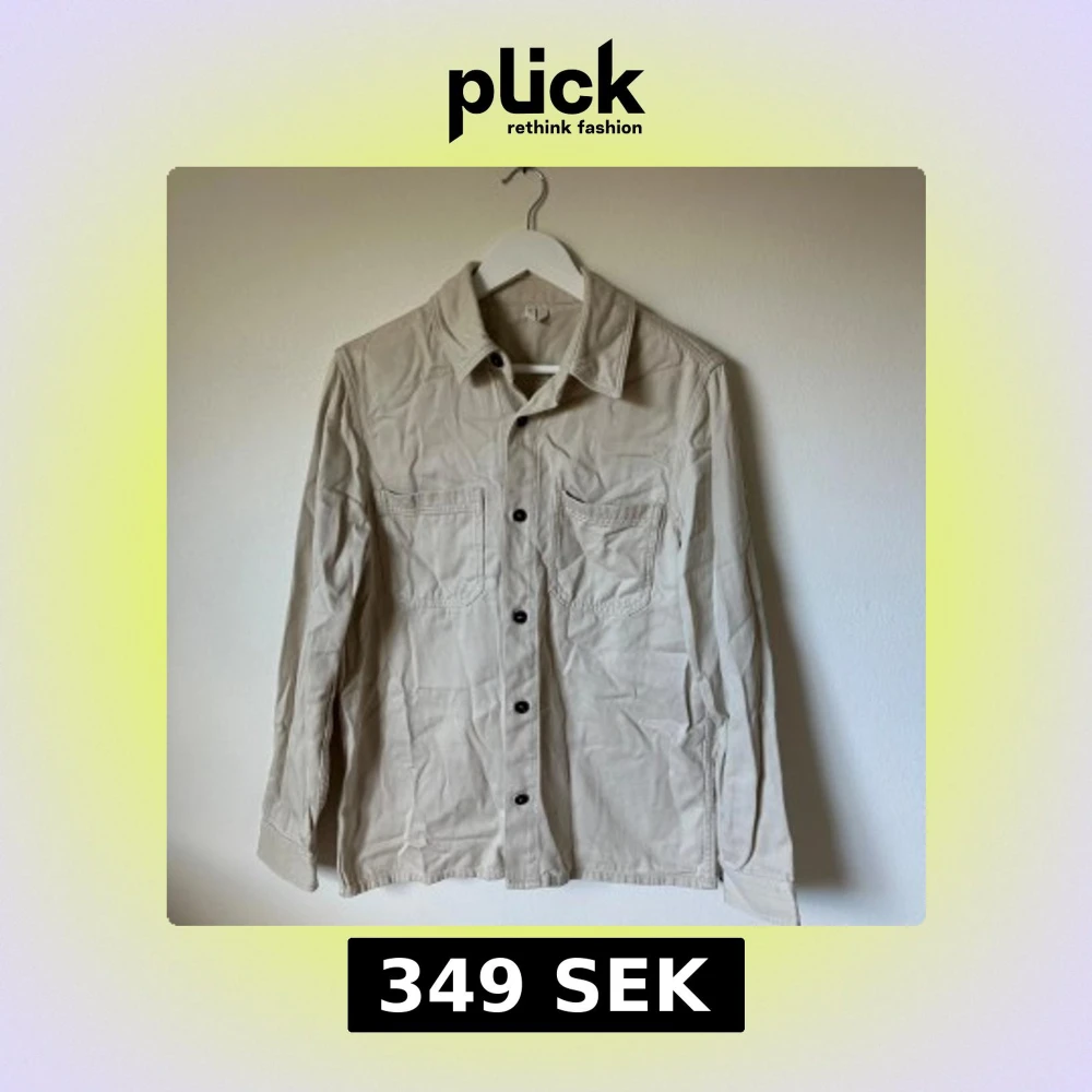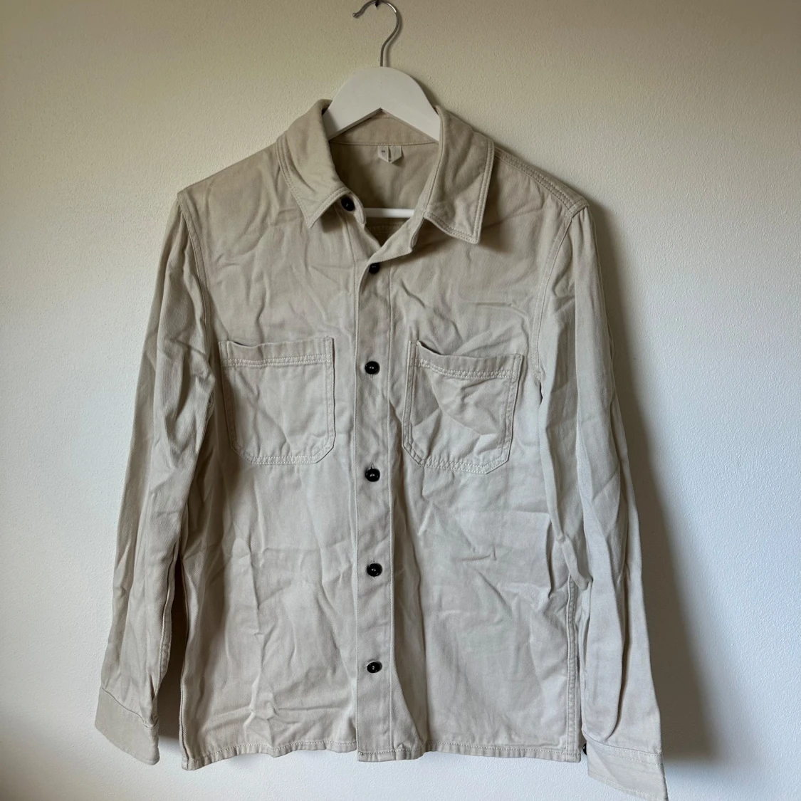 Stilren beige Arket overshirt i 100% bomull med två bröstfickor och svarta knappar framtill. Klassisk krage och långa ärmar med knapp vid ärmslut. Perfekt att slänga över en t-shirt för en avslappnad look. 3U7