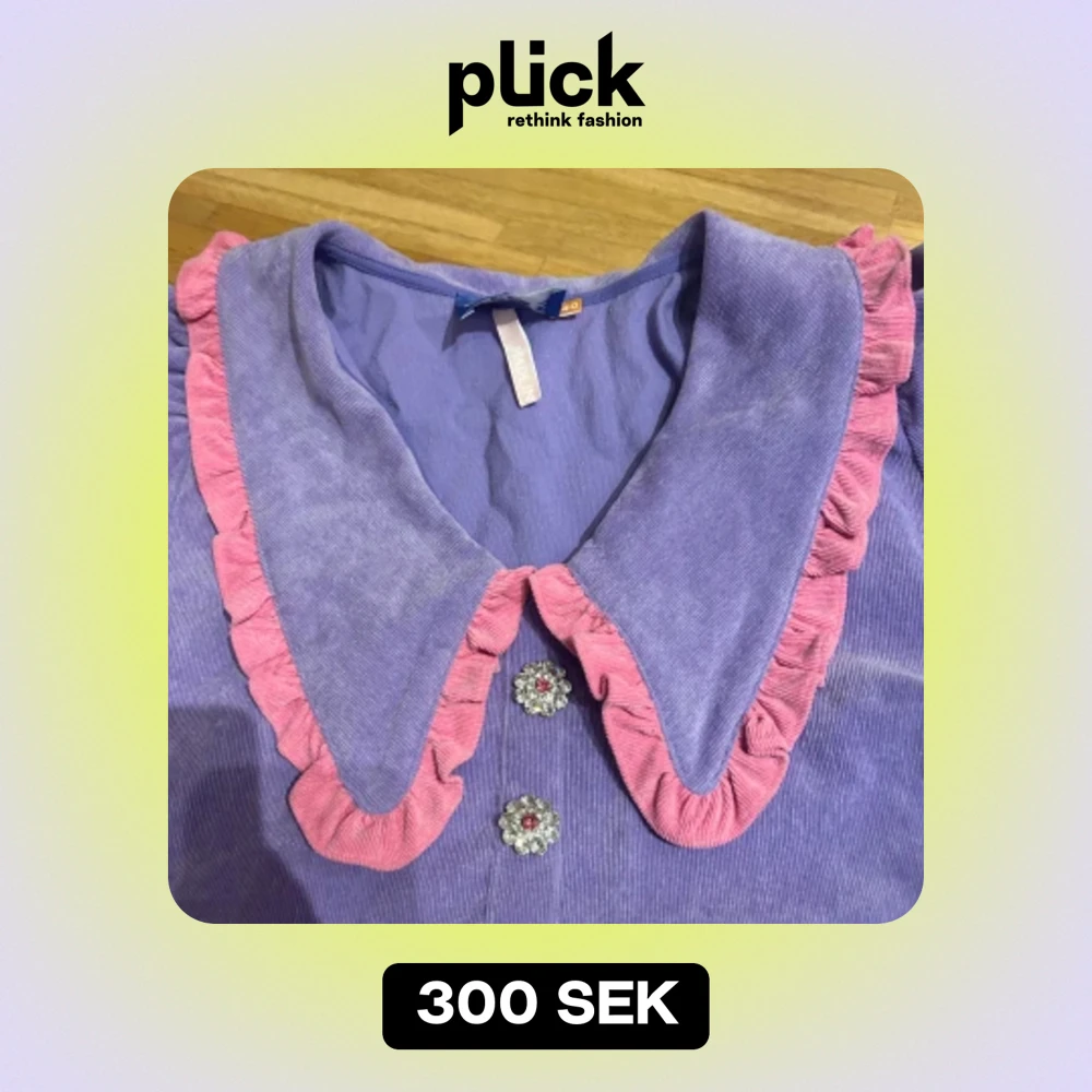 Manchester lila blus och ljusrosavolang runt kragen med fina knappar helt ny