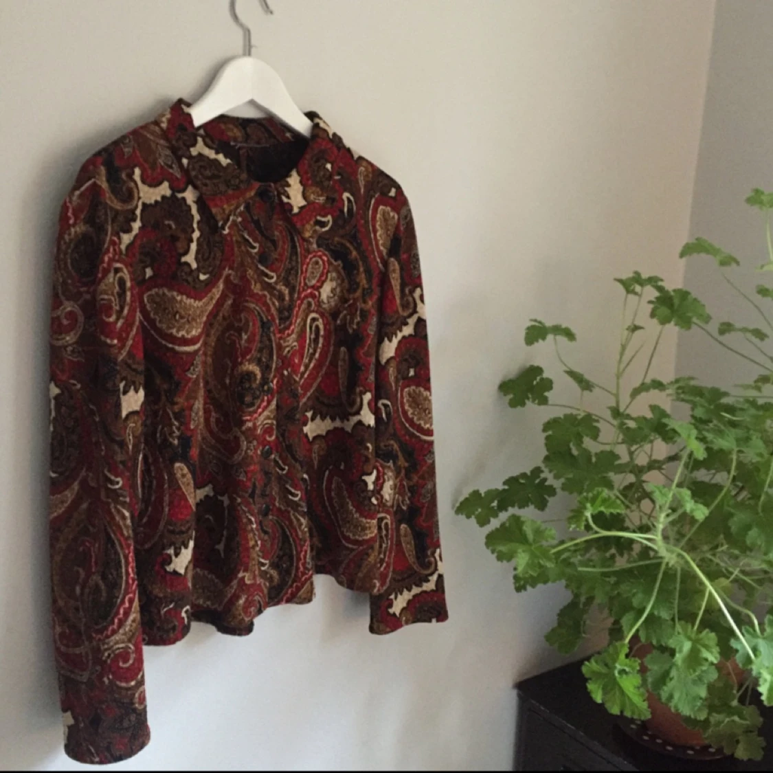 Fantastiskt fin retroskjorta i toppskick. Paisleymönstrad i härligt murriga färger, samt en öppning i ryggen som verkligen gör skjortan speciell. ✨Hämtas i Karlskrona // Frakt betalas av köparen Priset kan eventuellt diskuteras✨