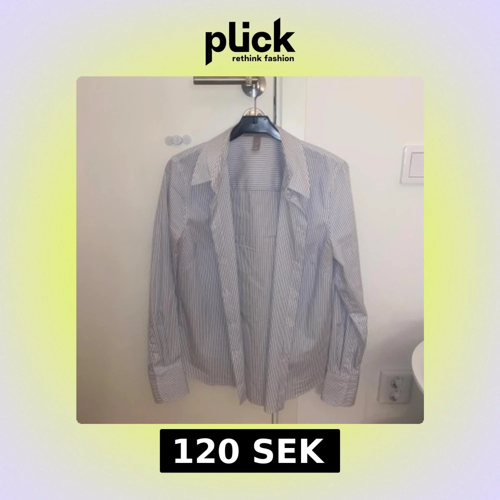 Klassisk skjorta från H&M i vitt med tunna blå ränder. Skjortan har lång ärm, bred krage och knäppning framtill. Tillverkad i mjuk bomull och passar perfekt till en avslappnad men ändå stilren look.